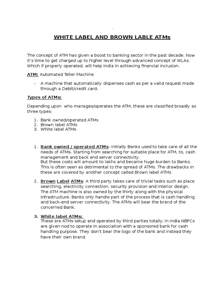 Brown Label Atm - But the atm machine contains logo of sponsor bank.